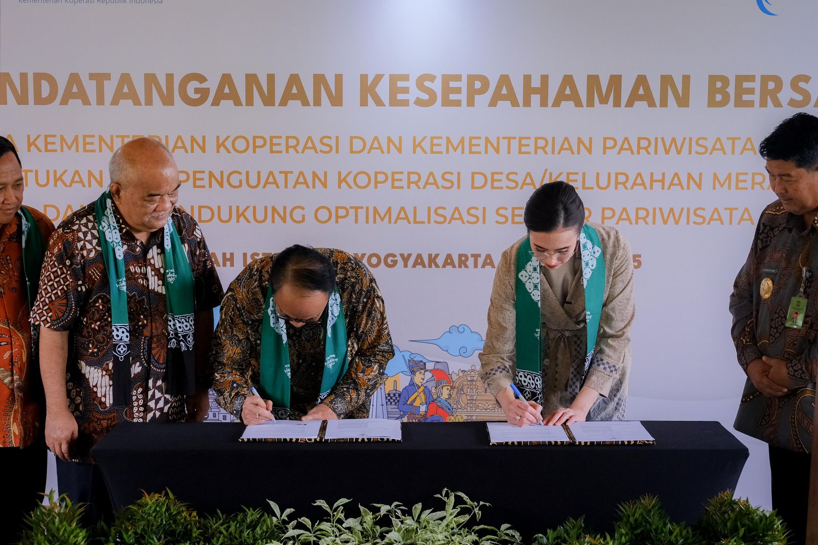 Penandatanganan dilakukan langsung oleh Menteri Pariwisata (Menpar), Widiyanti Putri Wardhana, dan Menteri Koperasi dan UKM, Budi Arie Setiadi.